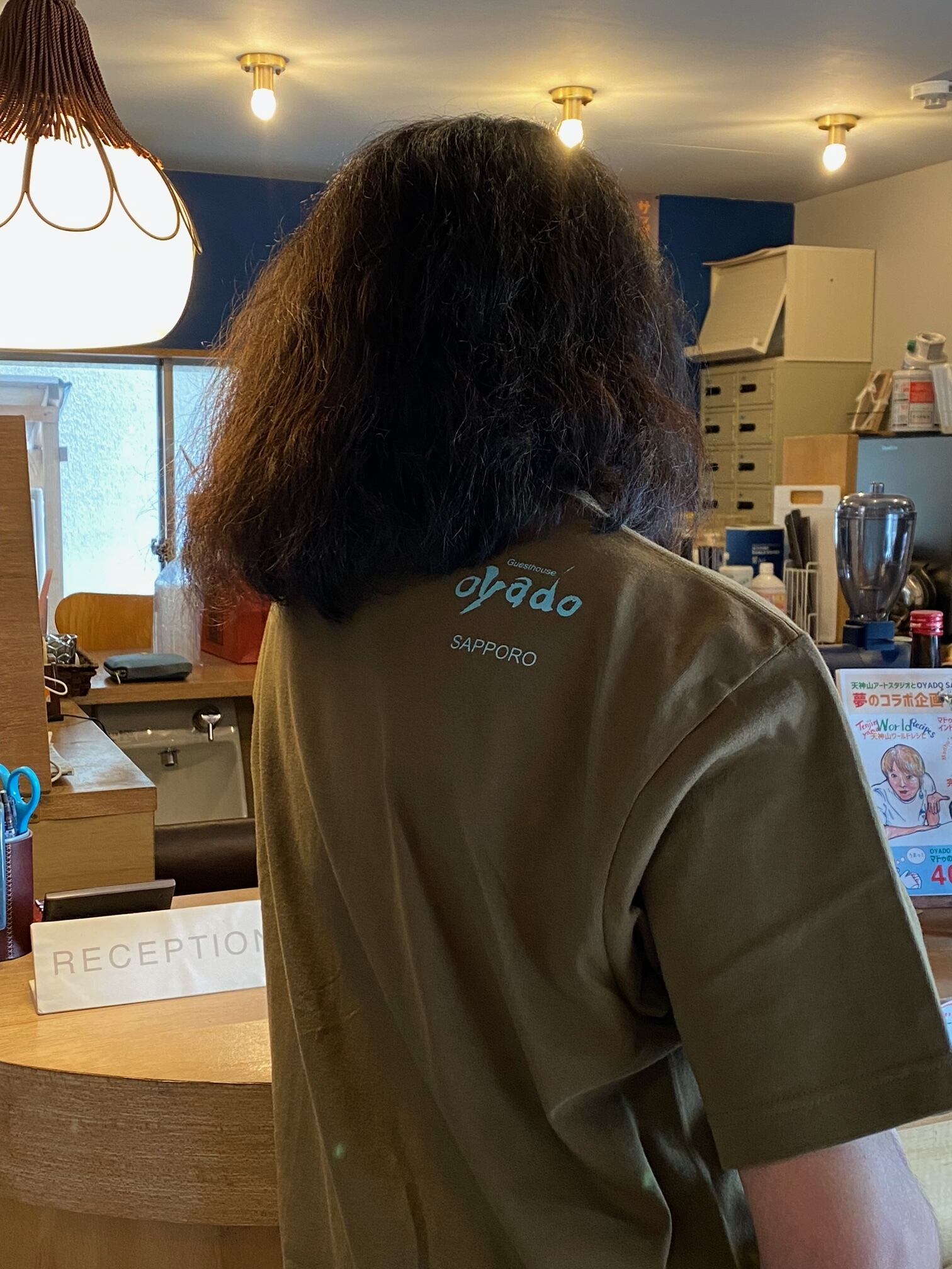 バック右肩にはOYADO SAPPOROのロゴが入ったTシャツです。